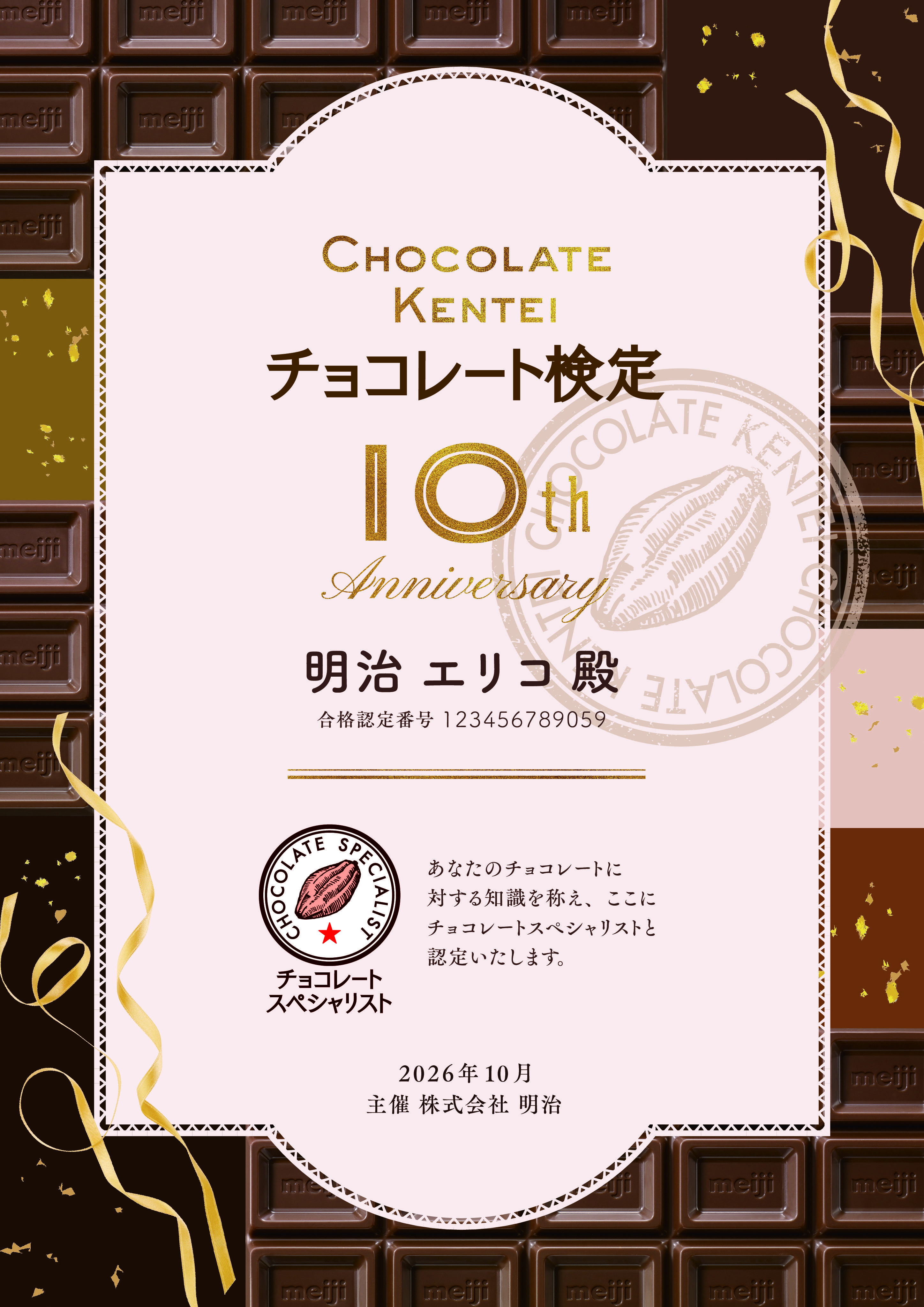 チョコレート検定では毎年、各級の成績上位5名様へ株式会社 明治のチョコレート1年分(360個)を差し上げています!